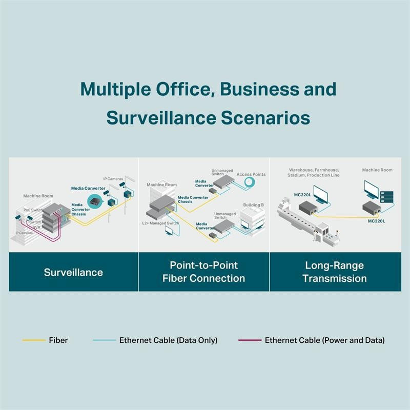 El TP-LINK MC220L es un convertidor de señal eléctrica (Gigabit de cobre a través de conector RJ45) a señal óptica (fibra monomodo o multimodo a través de conector LC) o viceversa