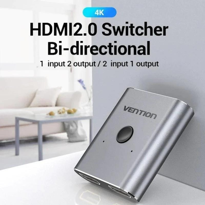 Conmutador HDMI bidireccional Vention AFUH0 con soporte para 4K a 60Hz, fácil conmutación entre dispositivos y diseño robusto, ideal para gestionar múltiples fuentes de video.