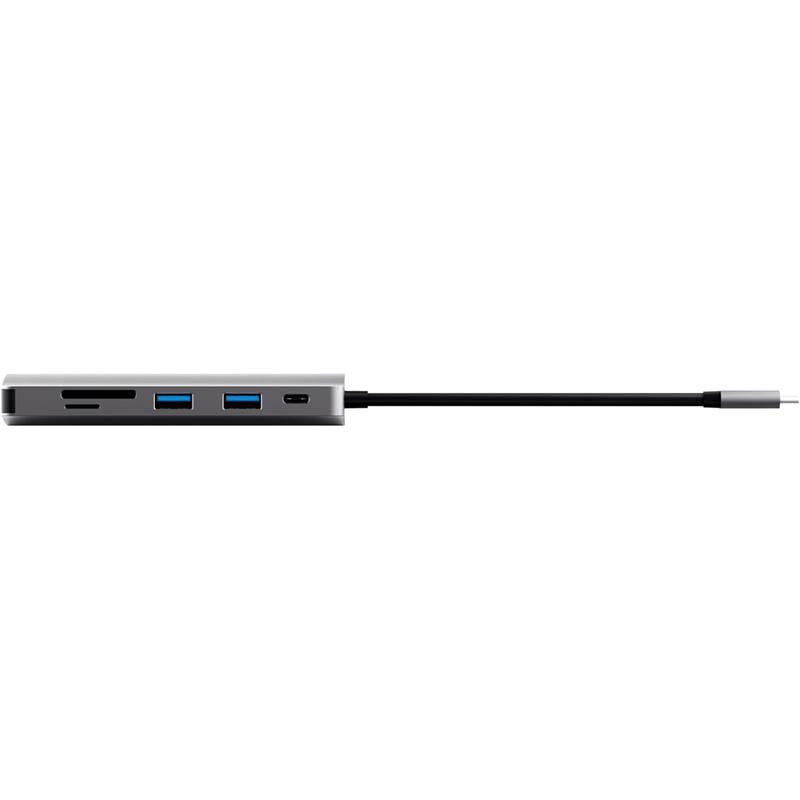 Elegante adaptador multipuerto en aluminio para añadir puertos HDMI, de red, lector de tarjetas, USB-C y USB al portátil utilizando una única conexión USB-C