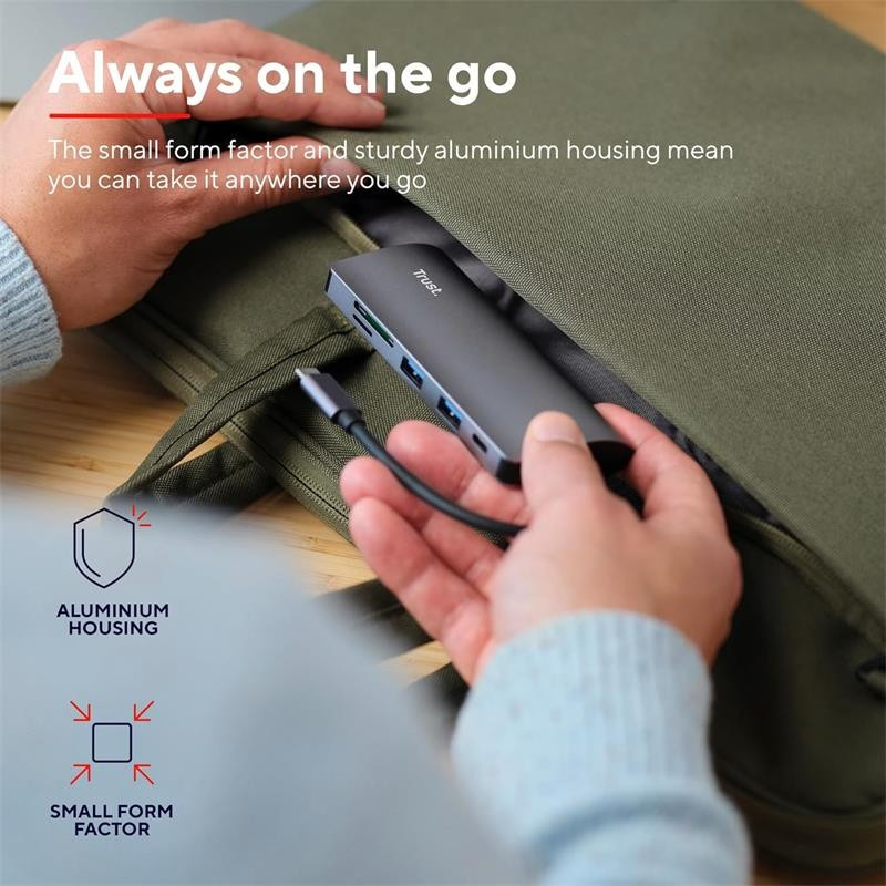 Trust Dalyx Adaptador multipuerto USB-C 7 en 1 - Plata