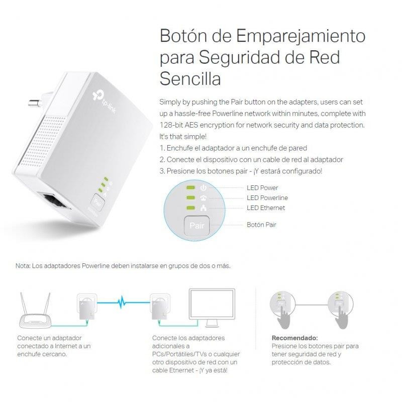 - Adaptador AV600 Powerline 2 × TL-PA4010