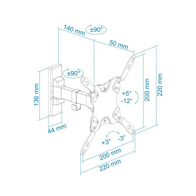 Soporte vertical de fijación en pared para pantallas planas de 13"" a 42"" y hasta un máximo de 20kg de peso. Permite configurar la inclinación de -12º ~ +5º sobre el plano vertical y con un ángulo de giro de 180º sobre el plano horizontal. Compatible con los formatos de fijación de pantalla VESA 75x75, 100x100, 200x100 Y 200x200 mm. Incluye manual de instrucciones y kit de montaje para que en unos minutos pueda disfrutar de su TV o monitor en el lugar elegido. 10 años de garantía y fabricado en metal de alta resistencia. Siempre con la calidad de los productos Tooq y al mejor precio.