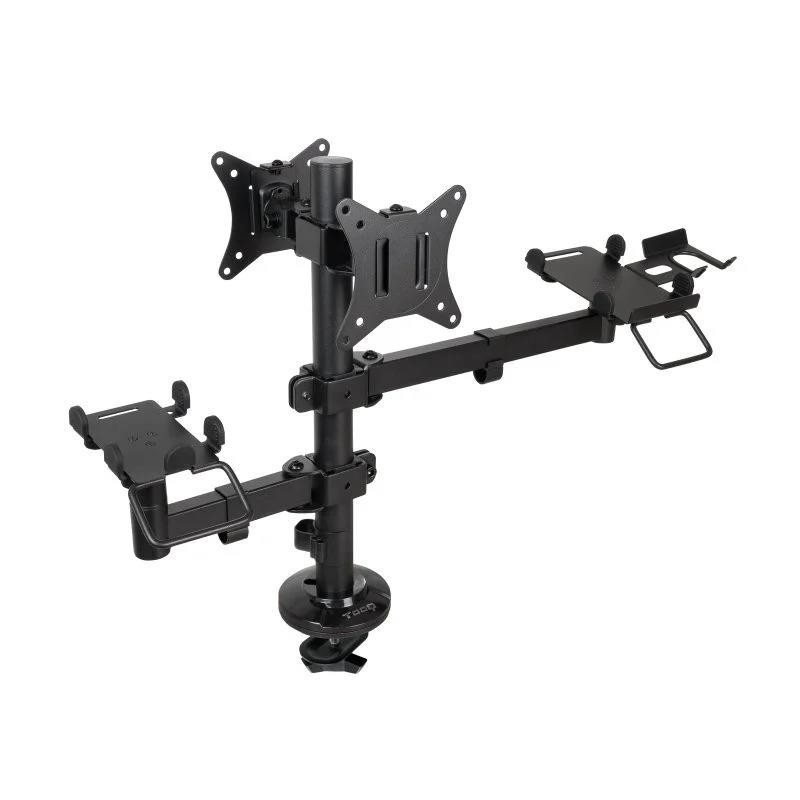SOPORTE DE MESA TOOQ MONITOR + IMPRESORA + TERMINAL 17-32 2 BRAZOS BLACK