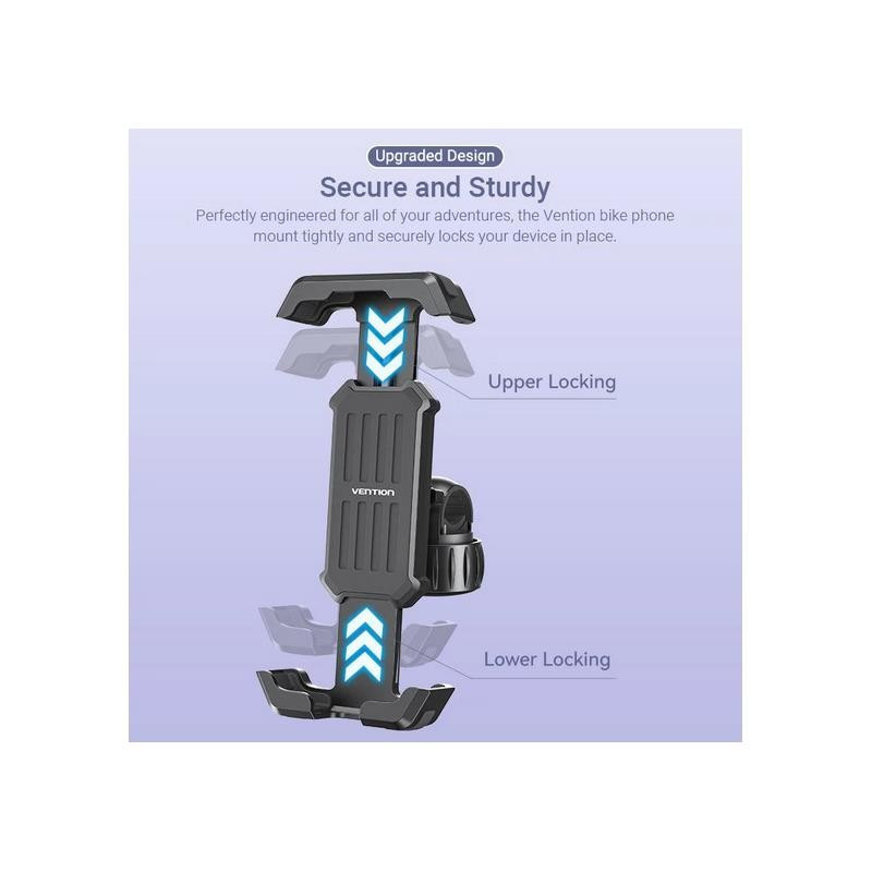 Soporte para smartphone de bicicleta Vention KSFB0, con montaje rápido y seguro, compatible con manillares de 17.5 mm a 30 mm y teléfonos de 4.7" a 6.9".