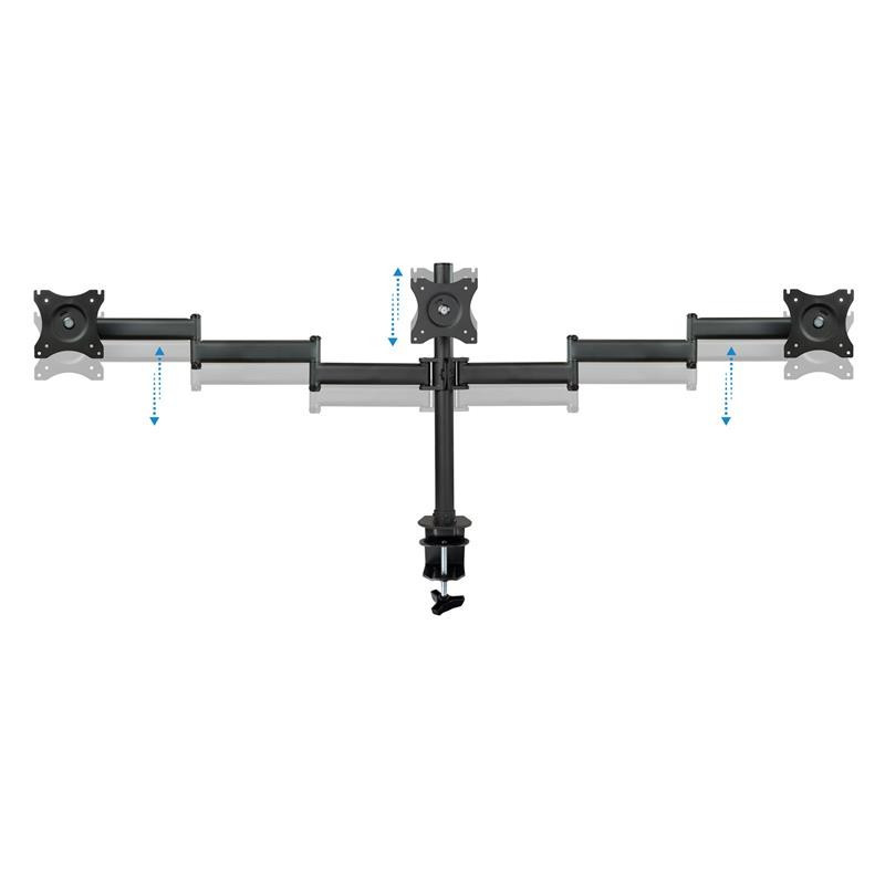- Soporte de mesa orientable para 3 pantallas (monitor / plasma / LCD / LED) de 13" a 27" (depende de la instalación y del espacio disponible)