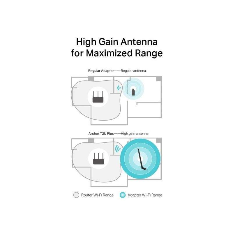 WIRELESS ADAPTADOR USB TP-LINK ARCHER T2U PLUS AC600 DUAL BAND 5DBI