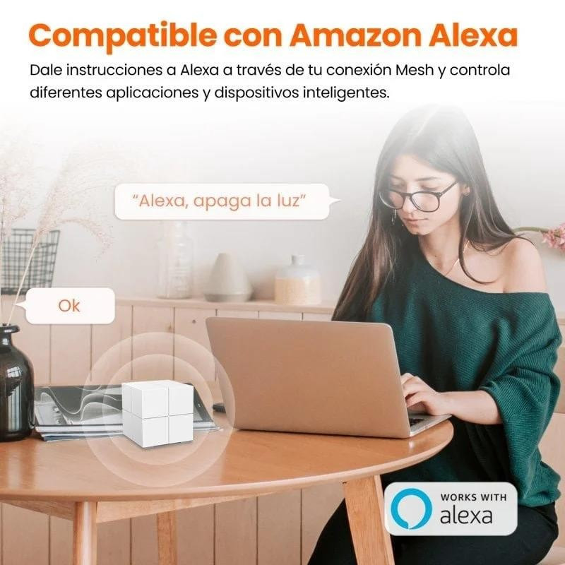 Cobertura de 500?, Conexión WiFi en Todas Partes. Sin importar la estructura, el conjunto de tres unidades cubre hasta 500 metros cuadrados con fuerte señal Wi-Fi. No existirán zonas sin señal, disfruta de una experiencia WiFi rápida y consistente donde quiera que vayas