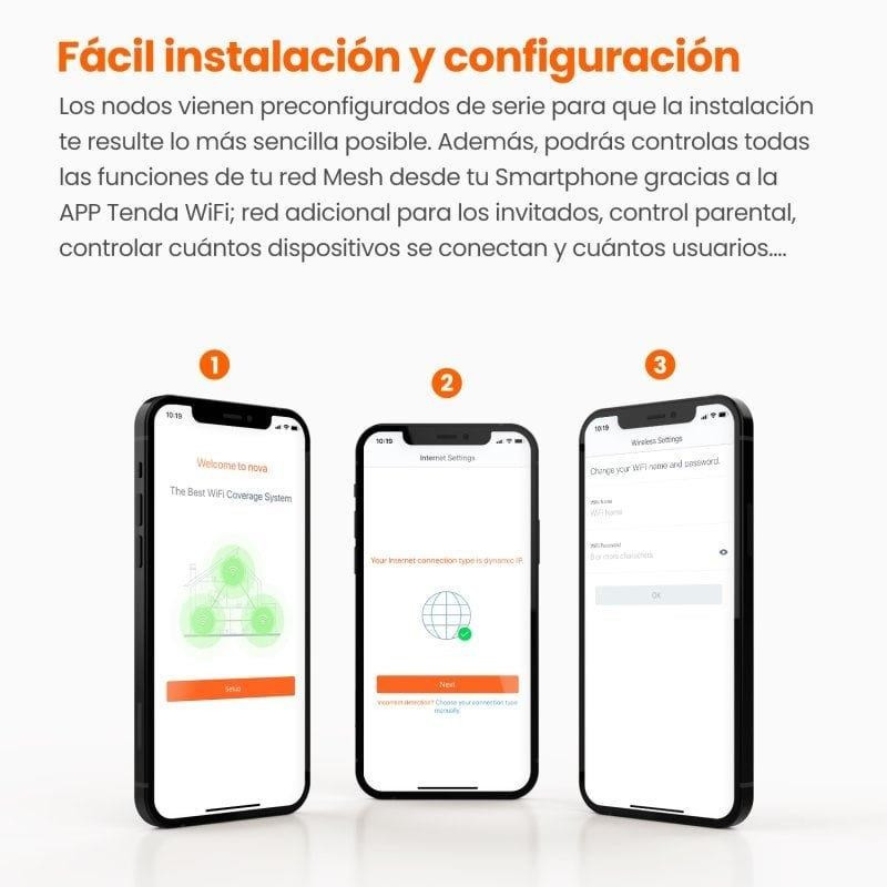 - Ve lo que está pasando con la App Wi-Fi Tenda: Mantén todo bajo control. Puedes controlar tu nova mientras estás fuera utilizando la App Tenda Wi-Fi. La aplicación te ayuda a personalizar y administrar tu red, como el acceso de los usuarios y controles parentales.