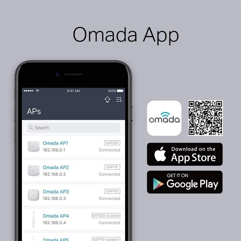 El Siga las instrucciones de configuración en la APP gratuita Omada y deje todo listo en unos minutos. Omada le permite configurar ajustes, monitorizar el estado de la red y gestionar a los clientes, todo desde un teléfono inteligente o tablet.