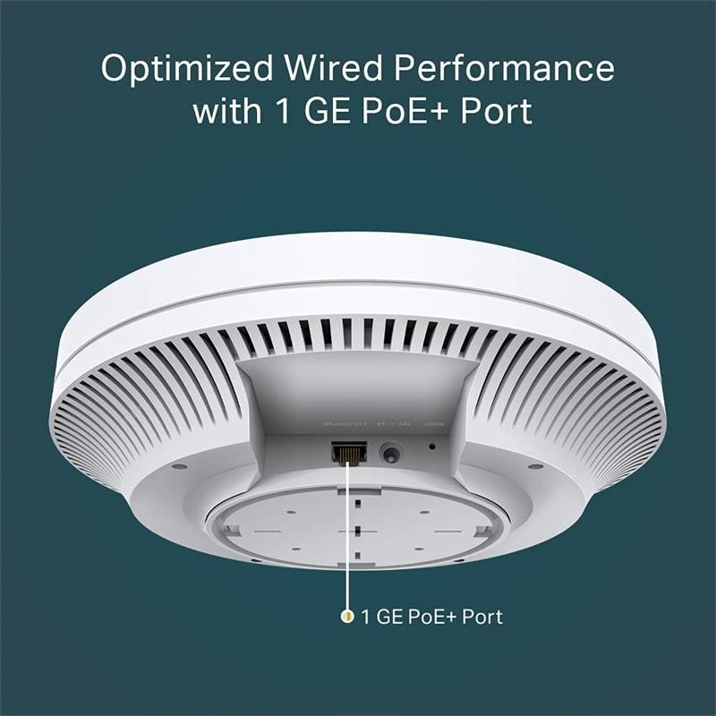 El punto de acceso TP-Link EAP620 HD Wi-Fi 6 de Omada presenta las últimas tecnologías 802.11ax como 1024 QAM y Long OFDM Symbol, lo que permite que el EAP aumente las velocidades generales hasta 1775 Mbps (1201 Mbps en una banda de 5 GHz y 574 Mbps en una banda de 2.4 GHz ).