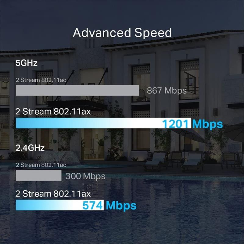 - Wi-Fi ultrarrápido 6 velocidades: 574 Mbps simultáneos en 2.4 GHz y 1201 Mbps en 5 GHz sumando velocidades Wi-Fi de 1775 Mbps.