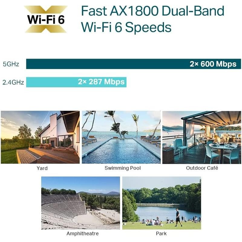 Impulsado por la última tecnología WiFi 6, el TP-Link EAP610-Outdoor ofrece velocidades de hasta 1.8 Gbps, proporcionando velocidades de datos más altas en las bandas de 5 GHz y 2.4 GHz para escenarios exigentes de múltiples usuarios, como piscinas al aire libre, cafés y parques de diversiones.