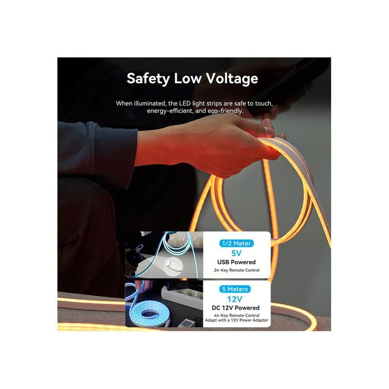 Tira LED RGB de silicona Vention PAEWF de 2 metro, flexible, resistente al agua y con control remoto, ideal para iluminar y personalizar cualquier espacio con estilo.