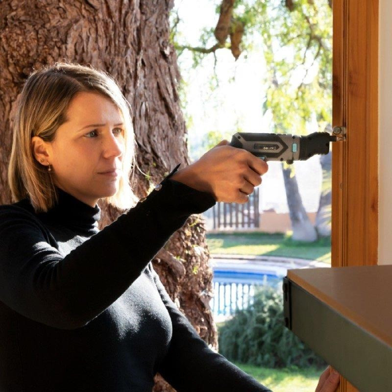 - Destornillador multifunción sin cables con una batería recargable de iones de litio de 4 V, 1500 mAh y una autonomía de hasta 60 minutos.