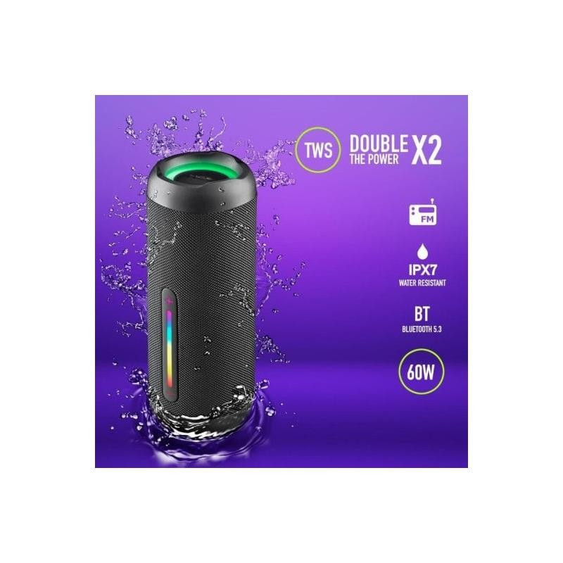 Altavoz portátil compatible con tecnología Bluetooth 60W, luces RGB e impermeabilidad IPX7.