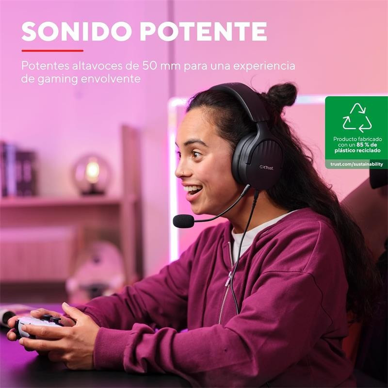¿Qué diferencia a estos auriculares de los demás? Además de hacer que los juegos suenen mejor que nunca, su composición ecológica de plástico reciclado en un 85 % los convierten en el aliado perfecto para un gaming más sostenible.