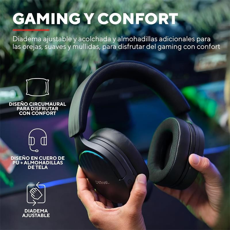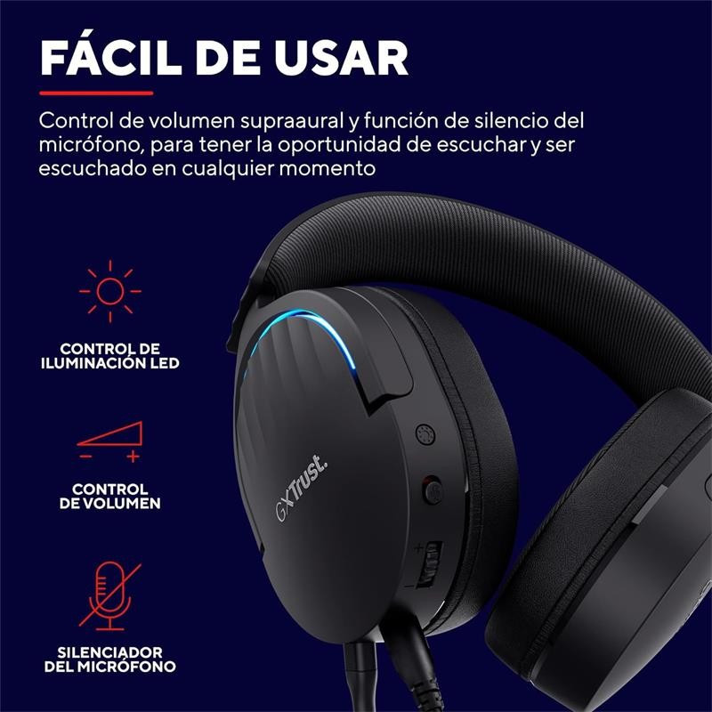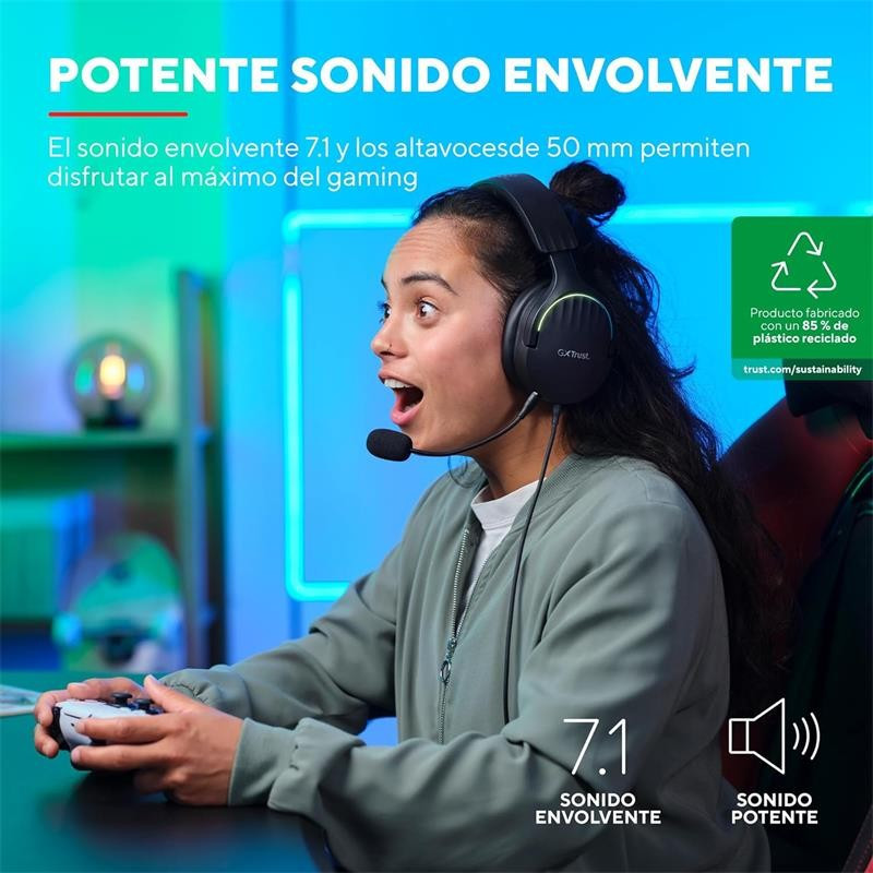 AURICULARES + MICROFONO TRUST GAMING RGB GXT 490 FAYZO HEADSET 7.1 BLACK