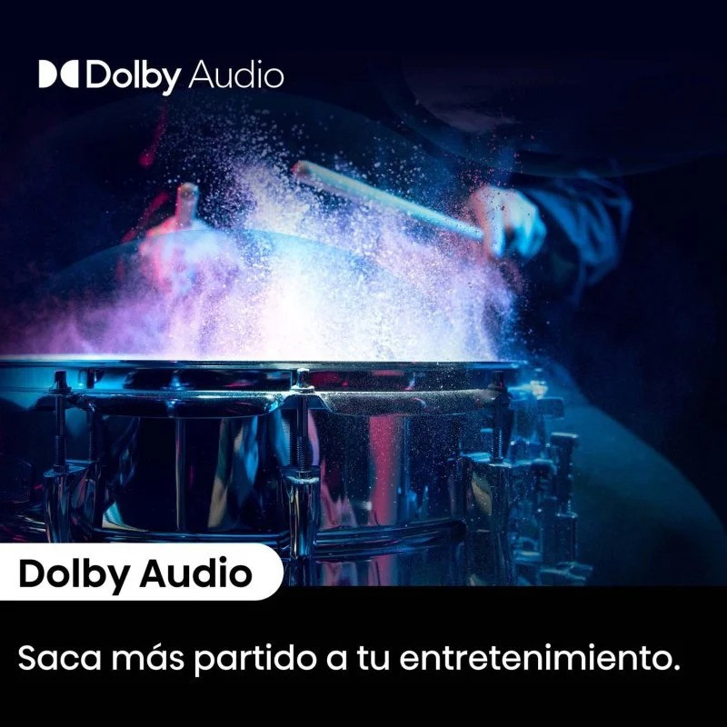 - Dolby DTS HD: El sonido parece surgir desde todas las direcciones sin necesidad de un sistema de altavoces múltiples. Reconocerás unos bajos más ricos, notarás un diálogo más claro y te sorprenderá cómo transforma tu experiencia al ver películas, escuchar música y jugar juegos. Todo esto lo disfrutarás solo con tu televisión.