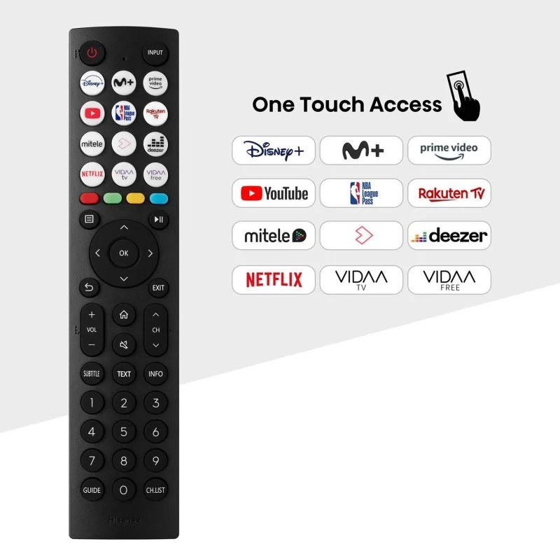 - Smart TV: Accede con tu Smart TV a una gran variedad de contenido (Youtube, Netflix, Prime Video, Disney +, Movistar +, y muchos más) a través de VIDAA, un sistema operativo rápido, intuitivo e inteligente para una experiencia de entretenimiento más versátil y personalizada.