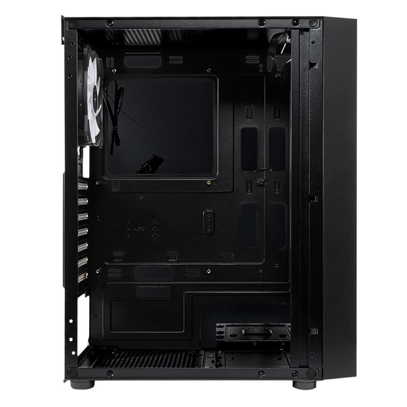 El diseño de su frontal sorprende por su diseño ARGB y la posibilidad de instalar hasta 3 ventiladores de 120 mm. Glayze cuenta con un panel lateral de cristal templado con efecto pantalla total: quedan expuestos todos los componentes del equipo, generando un efecto muy demandado por los usuarios.