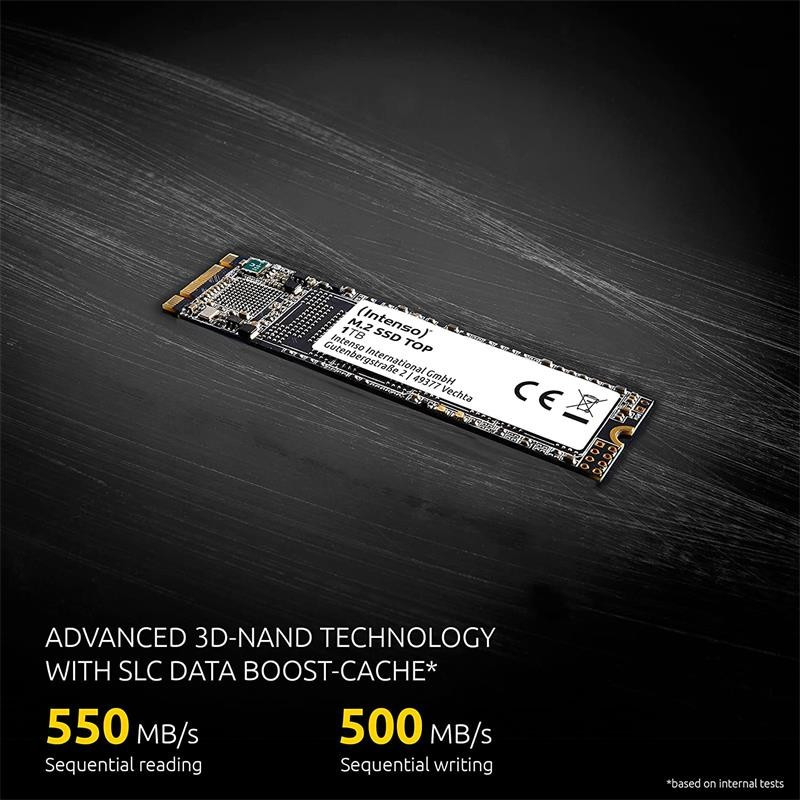 Intenso Top. SDD, capacidad: 512 GB, Factor de forma de disco SSD: M.2, Velocidad de lectura: 520 MB/s, Velocidad de escritura: 500 MB/s, Velocidad de transferencia de datos: 6 Gbit/s, Componente para: PC/ordenador portátil
