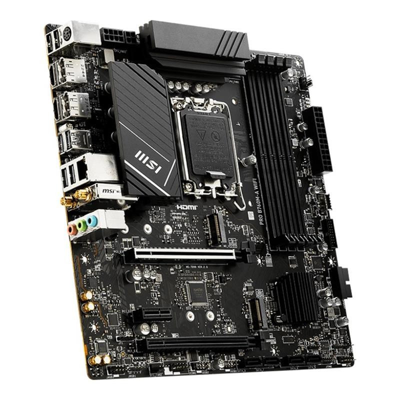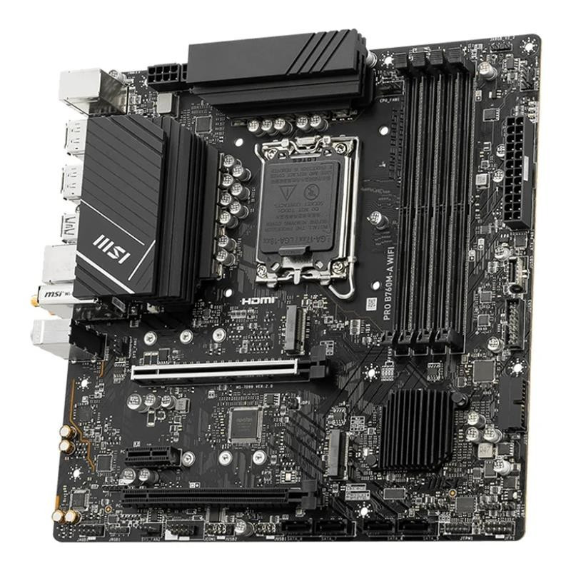 La MSI PRO B760M-A WIFI es una placa base diseñada para ofrecer un rendimiento sólido y una conectividad avanzada, ideal para profesionales y entusiastas que buscan una base confiable para su PC. Con características de última generación y un diseño robusto, es perfecta para tareas intensivas y configuraciones multitarea.