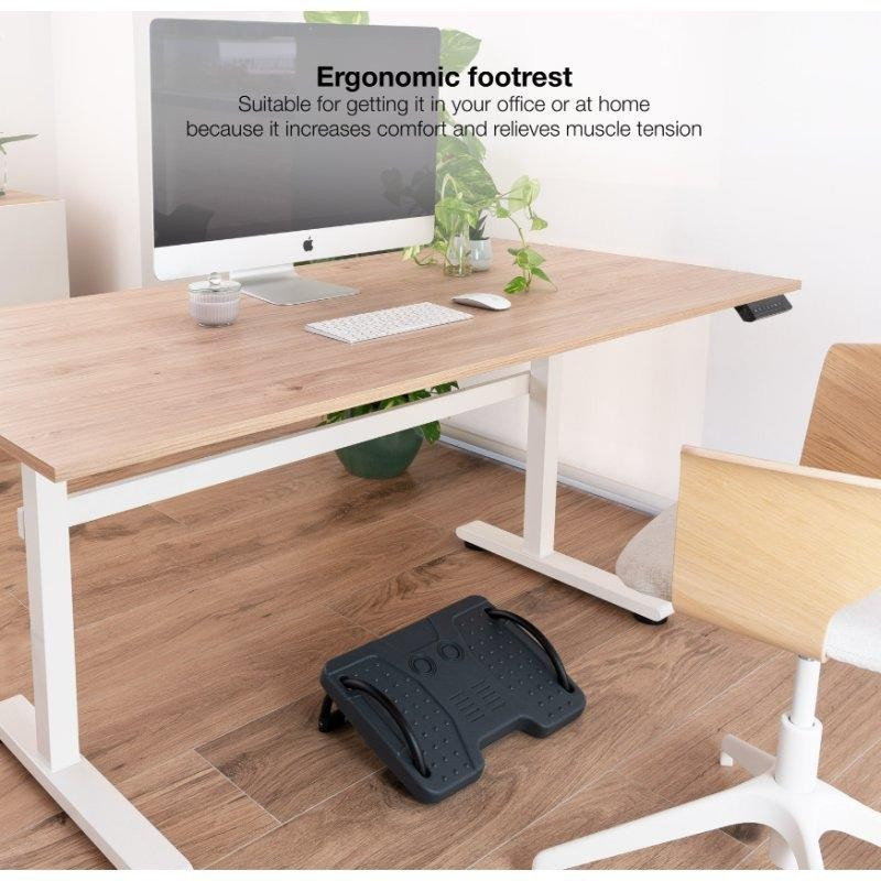 Disfruta de la comodidad de trabajar en casa o en la oficina con nuestro reposapiés TooQ TQFR0601-G. Este accesorio te permitirá adoptar una postura saludable y sentirte más confortable mientras realizas tus actividades cotidianas. Es totalmente ajustable a tus preferencias. Disponible en color gris.