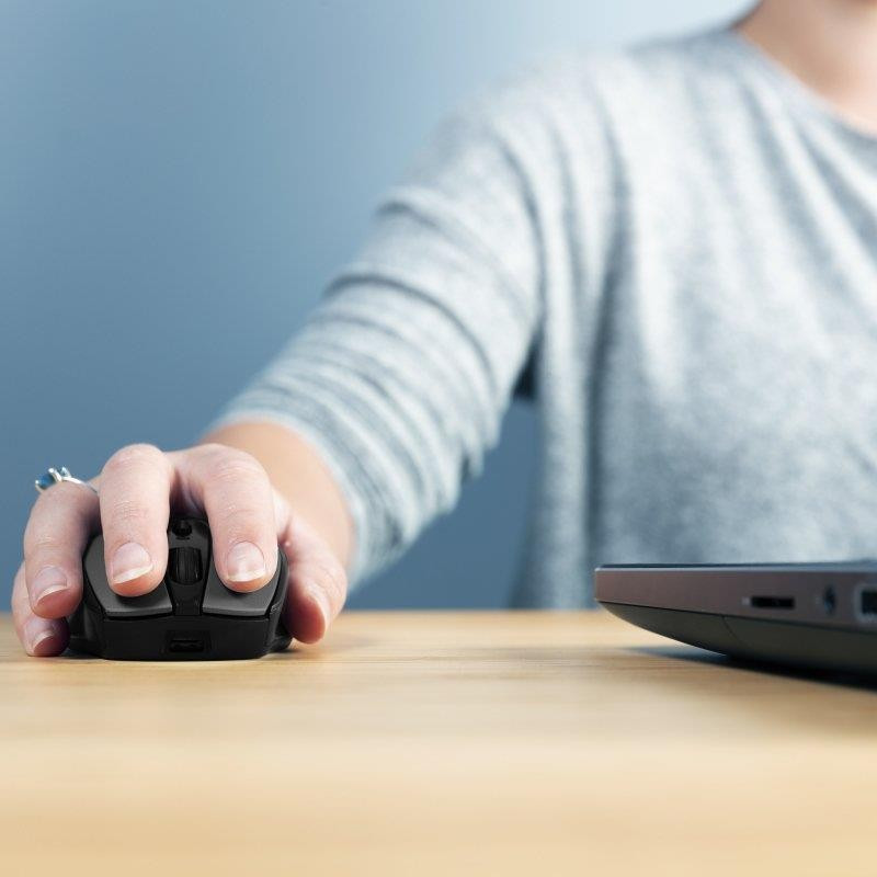 Gracias al diseño simétrico y ambidiestro del Zaya, no importa si se es diestro o zurdo. Y además funciona en los dispositivos más modernos. Basta con conectar el receptor USB a un puerto USB libre del portátil, PC, Mac o Chromebook, y ya puede ponerse en marcha.