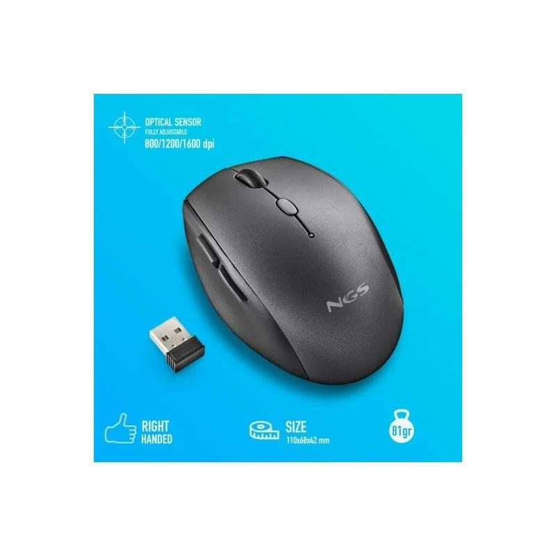 RATON NGS BEE BLACK ERGONOMICO WIRELESS SILENT BLACK