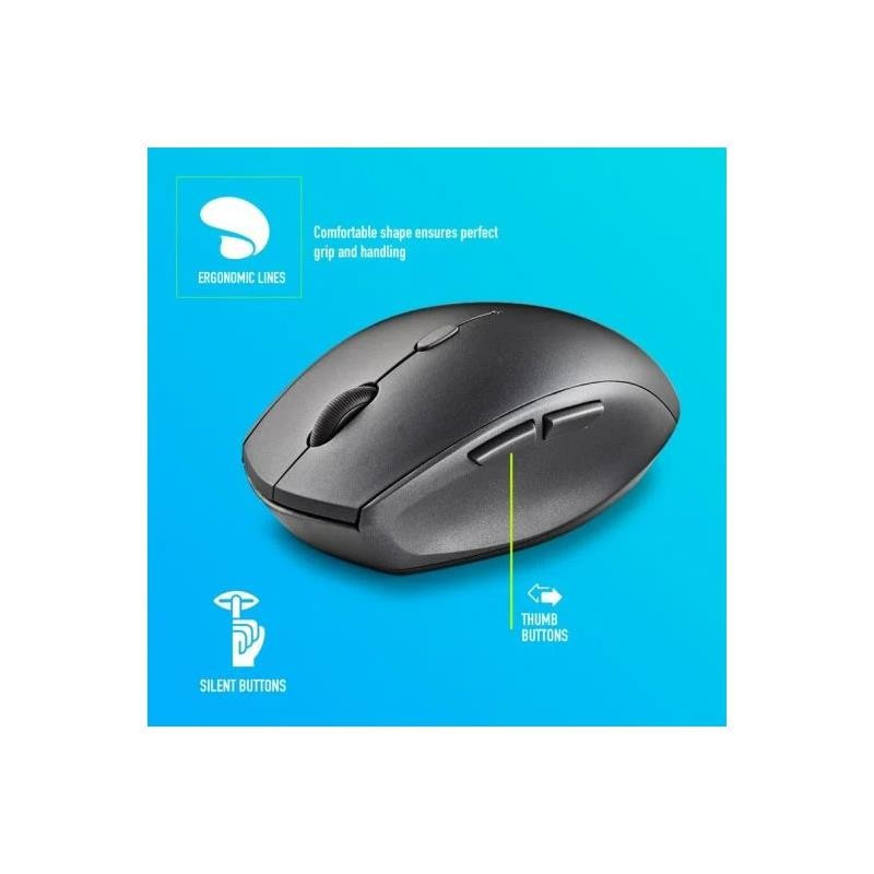El NGS Bee Black es un ratón inalámbrico ergonómico diseñado para proporcionar un uso cómodo y silencioso. Cuenta con 5 botones y una rueda de desplazamiento, así como un sensor óptico de alto rendimiento con tres niveles de DPI ajustables (800/1200/1600).