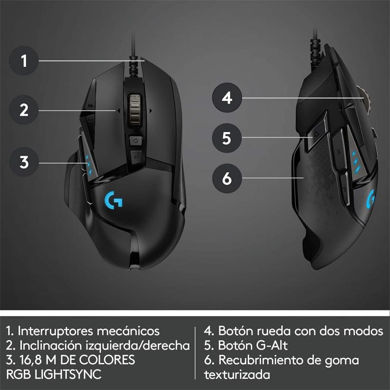 RATON LOGITECH G502 HERO OPTICO USB GAMING BLACK