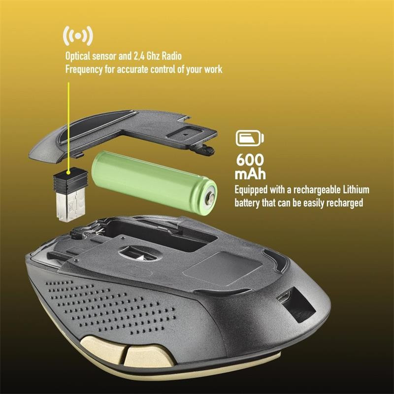 - Cuenta con sensor óptico y RF de 2,4 Ghz.