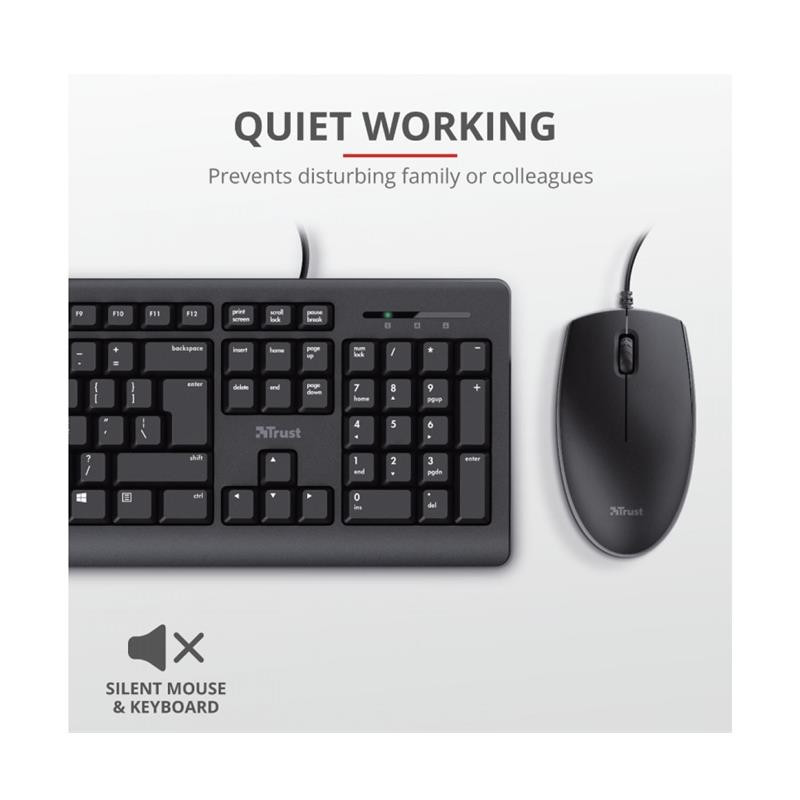- Apostar por lo básico Hay teclados de todas las formas y medidas, ¿pero qué pasa si uno solo quiere algo básico? Eso es lo que ofrece exactamente el Trust TKM-250. Tiene un diseño de tamaño completo, teclas resistentes al vertido de líquidos y permite ajustar su altura. Se suministra con un ratón sencillo ambidiestro para poder empezar a trabajar tan pronto se conecta este juego en el PC, y utiliza un empaquetado fácil de abrir y sostenible, que ahorra tiempo y respeta al medio ambiente. El teclado TKM-250 responde exactamente a las necesidades de cada usuario.