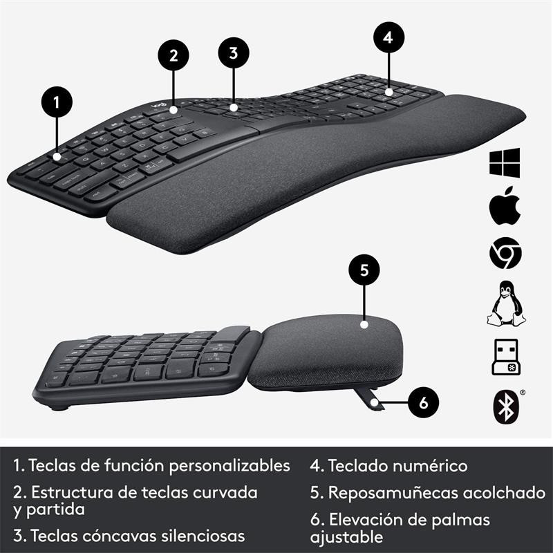 - Aprobado por los ergonomistas: El teclado inalámbrico ERGO K860 ergonómico tiene certificación de United States Ergonomics para mejorar la postura y reducir la tensión muscular.
