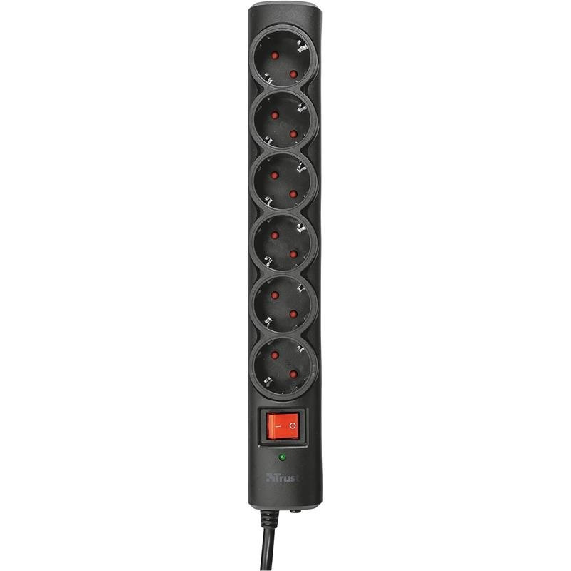 Conecta todos tus dispositivos con esta toma de alimentación de Trust con 6 enchufes protegidos para proteger dispositivos contra sobretensiones.