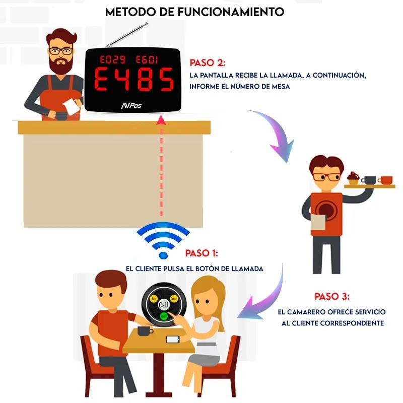 La Pantalla Receptora de Avisos Clientes AVPos SR01 es la solución perfecta para optimizar el servicio en tu restaurante. Permite a tus clientes llamar al camarero de forma sencilla, ya sea para solicitar agua, hacer un pedido o pedir la cuenta. Cuando el cliente presiona el dispositivo, se envía un aviso al camarero indicando la mesa correspondiente. Con su pantalla de 4 dígitos, la SR01 muestra simultáneamente la información de hasta 3 grupos de llamadas. Puede ser colgada en la pared o colocada en el mostrador para mayor comodidad. La voz de aviso puede ser configurada en cualquier idioma y las palabras clave pueden ser personalizadas según tus necesidades. La cobertura de señal varía de 150 a 250 metros en área abierta, dependiendo del botón al que esté conectada. Además, es posible establecer tiempos de aviso y ciclos, adaptándose a tus preferencias. Puedes cambiar el tono de llamada antes de la producción y ajustar el volumen de la voz. La SR01 se puede cargar mediante un powerbank con un cable especial, ideal para su uso en la playa u otras situaciones. Además, se puede conectar al software de ordenador a través de conexión WIFI, facilitando la gestión del servicio. Con nuestra Pantalla Receptora de Avisos Clientes AVPos SR01, asegura un servicio eficiente y una experiencia satisfactoria para tus clientes.