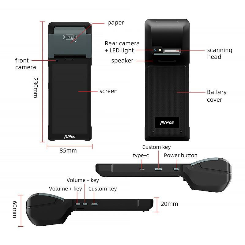 CAPTURADOR PDA IMPRESORA AVPOS TC600 6 OCTA/4GB/128GB/WIFI/BT/NFC/2D/4G