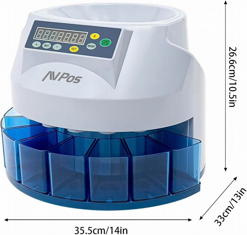 ¡No más tediosos conteos de monedas! Con el contador/clasificador de monedas AVPos CCM6, podrás ahorrar tiempo y esfuerzo al contar tus monedas de forma rápida y precisa. Este dispositivo es ideal para empresas, tiendas, y cualquier negocio que maneje grandes cantidades de monedas. ¡Adiós al dolor de cabeza del conteo manual! Obtén tu contador/clasificador de monedas AVPos CCM6 ahora mismo y empieza a ahorrar tiempo y dinero.