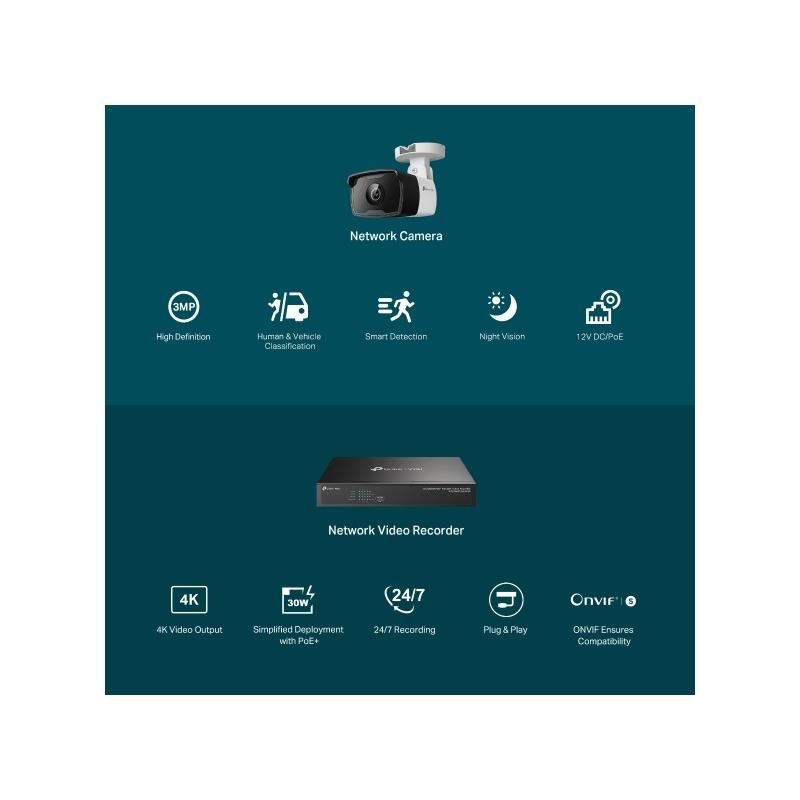 PACK CAMARA TP-LINK VIGI 4X BULLET 3MP POE + GRABADOR IP 8 CH POE