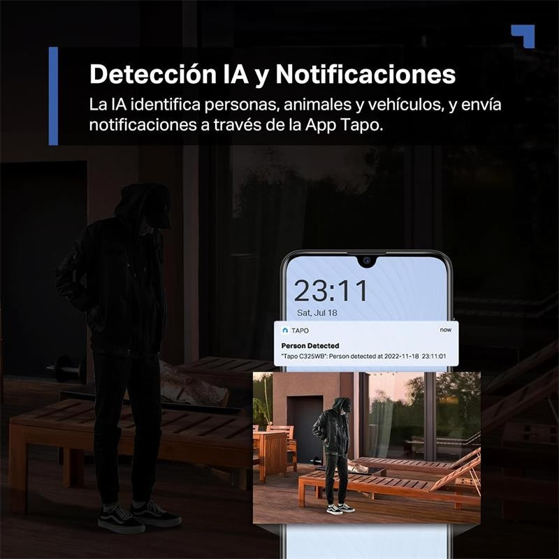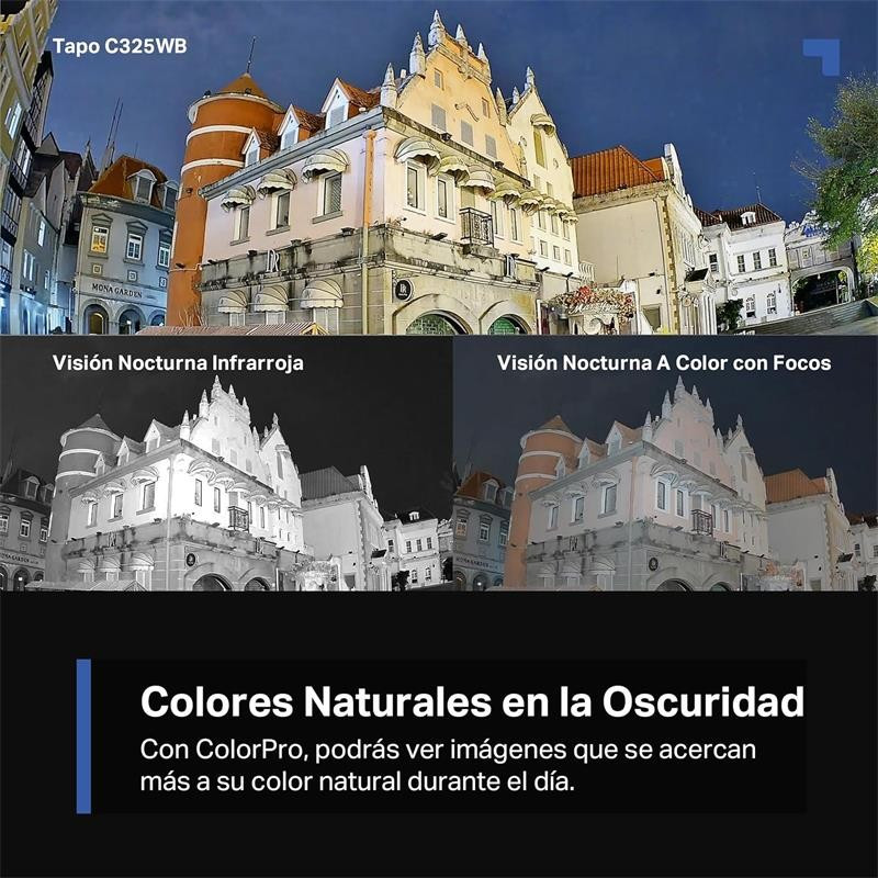 Ideal para proteger cualquier espacio exterior, la Tapo C325WB ofrece una excelente solución de seguridad sin interrupciones visuales, asegurando la captura de imágenes claras y de calidad, incluso en la noche más oscura